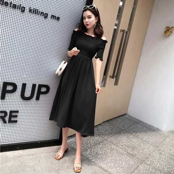 Jual White Midi Dress Wanita Import Gaun Pantai Casual Dress Beachwear Pop Dress Black Dress 010 75bfk Shopee Indonesia